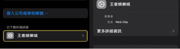 到設定>一般>裝置管理>設定描述檔(王者)>安裝